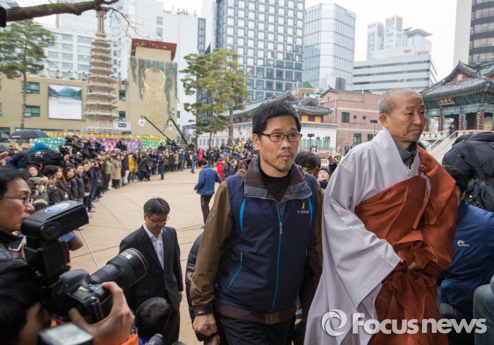 | △ 대웅전 향하는 한상균 |