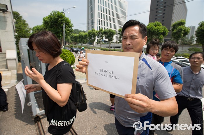 (서울=포커스뉴스) 11일 오전 서울 서초구 대검찰청 앞에서 사건의 피해자와 유가족들이 '삼례 나라슈퍼 3인조 강도치사 사건' 진정서 제출 기자회견을 마친 뒤 진정서를 들고 대검으로 향하고 있다.