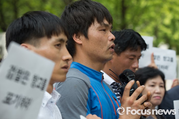 (서울=포커스뉴스) 11일 오전 서울 서초구 대검찰청 앞에서 사건의 피해자와 유가족들이 '삼례 나라슈퍼 3인조 강도치사 사건' 진정서 제출 기자회견을 하고 있다.