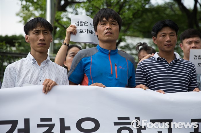 (서울=포커스뉴스) 11일 오전 서울 서초구 대검찰청 앞에서 사건의 피해자와 유가족들이 '삼례 나라슈퍼 3인조 강도치사 사건' 진정서 제출 기자회견을 하고 있다.