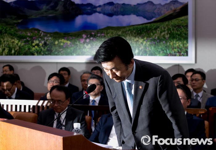 (서울=포커스뉴스) 11일 오전 서울 여의도 국회에서 열린 외교통일위원회 전체회의에 참석한 윤병세 외교부 장관이 제안설명에 앞서 인사하고 있다.