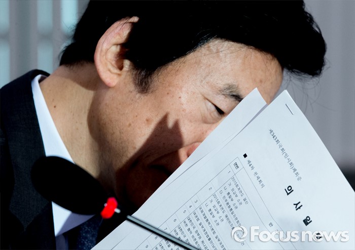 (서울=포커스뉴스) 11일 오전 서울 여의도 국회에서 열린 외교통일위원회 전체회의에 참석한 윤병세 외교부 장관이 자료를 살펴보고 있다.