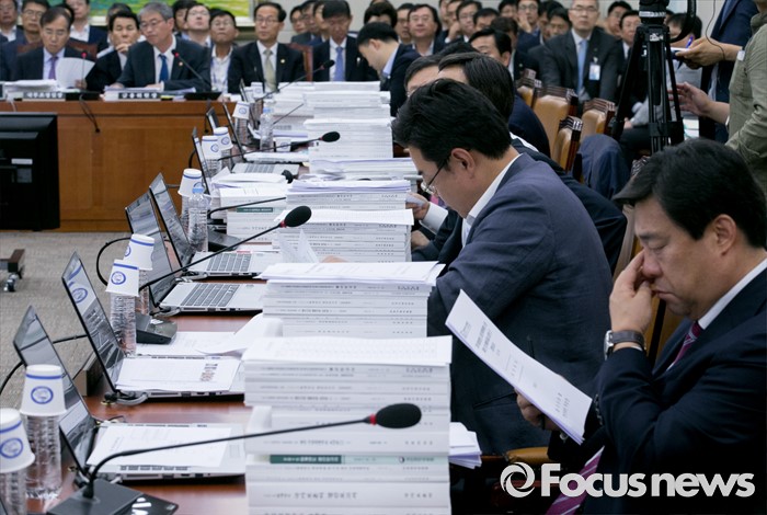 (서울=포커스뉴스) 11일 오전 서울 여의도 국회에서 열린 정무위원회 전체회의에 참석한 의원들이 결산심사 자료를 살펴보고 있다.