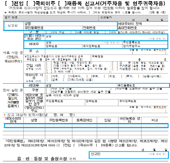 또 모든 주민등록 서식에서 신고인 성명을 1회만 작성하는 것으로 바뀐다.