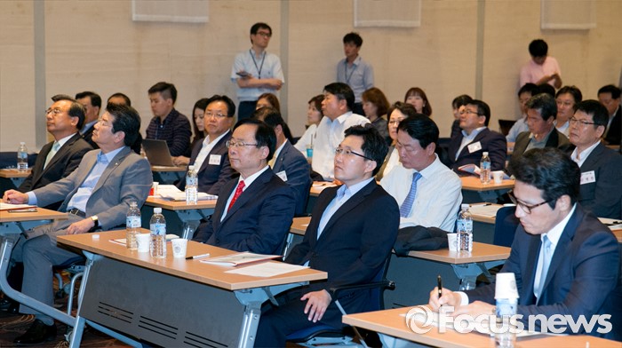 (서울=포커스뉴스) 11일 오후 서울 여의도 중소기업중앙회관에서 열린 새누리당 전국원외위원장협의회 전체회의에 전당대회 출마를 선언한 이정현, 강석호, 이주영, 김용태, 한선교, 정병국 의원 등이 이준석 노원병 위원장의 주제발표를 듣고 있다.