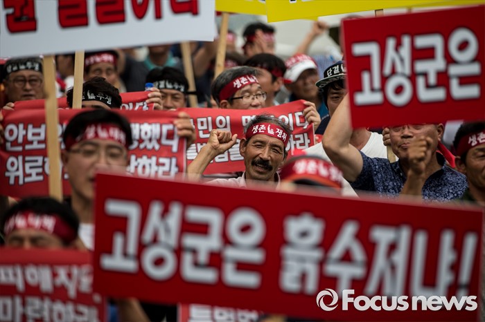 (서울=포커스뉴스) 금강산관광 중단 8년째를 맞아 금강산관광 중단 피해대응 고성군 추진위원회 회원들이 11일 오후 서울 종로구 서울정부청사앞에서 지원대책 마련을 촉구하며 집회를 갖고 있다.