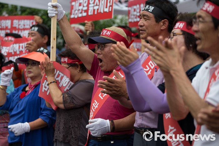 (서울=포커스뉴스) 금강산관광 중단 8년째를 맞아 금강산관광 중단 피해대응 고성군 추진위원회 회원들이 11일 오후 서울 종로구 서울정부청사앞에서 지원대책 마련을 촉구하며 집회를 갖고 있다.