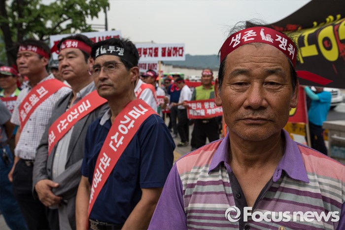 (서울=포커스뉴스) 금강산관광 중단 8년째를 맞아 금강산관광 중단 피해대응 고성군 추진위원회 회원들이 11일 오후 서울 종로구 서울정부청사앞에서 지원대책 마련을 촉구하며 집회를 갖고 있다.