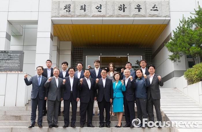 (서울=포커스뉴스) 박지원(앞줄 가운데) 국민의당 비상대책위원장을 비롯한 주요 당직자들이 11일 오후 서울 노원구 태릉선수촌에 방문해 김정행(앞줄 왼쪽 네번째) 대한체육회 공동회장 등 참석자들과 기념촬영을 하고 있다.