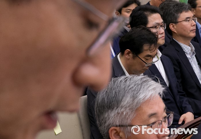 (서울=포커스뉴스) 11일 오후 서울 여의도 국회에서 열린 교육문화체육관광위원회 전체회의에 "민중은 개·돼지"라고 발언해 물의를 빚은 나향욱(오른쪽 세번째) 교육부 정책기획관이 참석해 자리하고 있다. 왼쪽은 제안설명 중인 이준식 사회부총리 겸 교육부 장관.