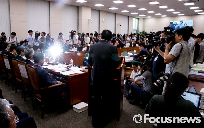 (서울=포커스뉴스) 11일 오후 서울 여의도 국회에서 열린 교육문화체육관광위원회 전체회의에 "민중은 개·돼지"라고 발언해 물의를 빚은 나향욱 교육부 정책기획관이 참석해 의원들의 질의에 답하고 있다.