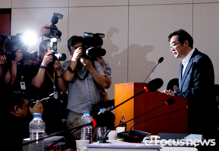 (서울=포커스뉴스) 11일 오후 서울 여의도 국회에서 열린 교육문화체육관광위원회 전체회의에 "민중은 개·돼지"라고 발언해 물의를 빚은 나향욱 교육부 정책기획관이 참석해 의원들의 질의에 답하고 있다.