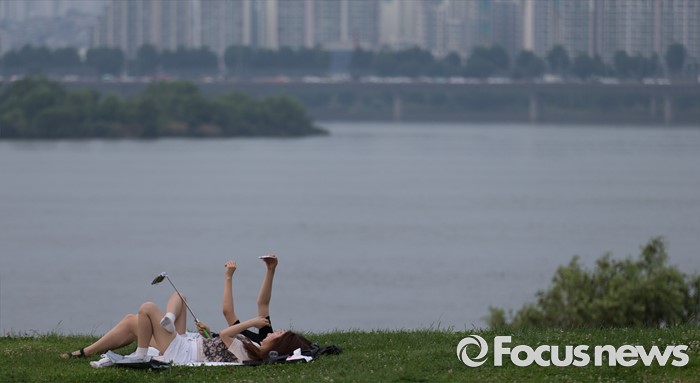 (서울=포커스뉴스) 올해 들어 첫 열대야가 발생한 11일 오후 서울 여의도 한강공원을 찾은 시민들이 더위를 피해 휴식을 취하고 있다.