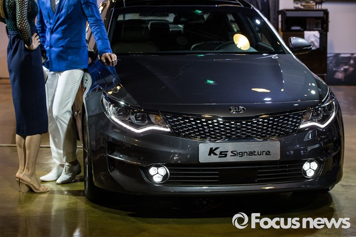(서울=포커스뉴스) 12일 오전 서울 강남구 인터와이드 스튜디오에서 열린 '2017 K5, K5 PHEV' 출시 사진 및 영상 발표회에 K5 'Signature' 차량이 전시되어 있다.