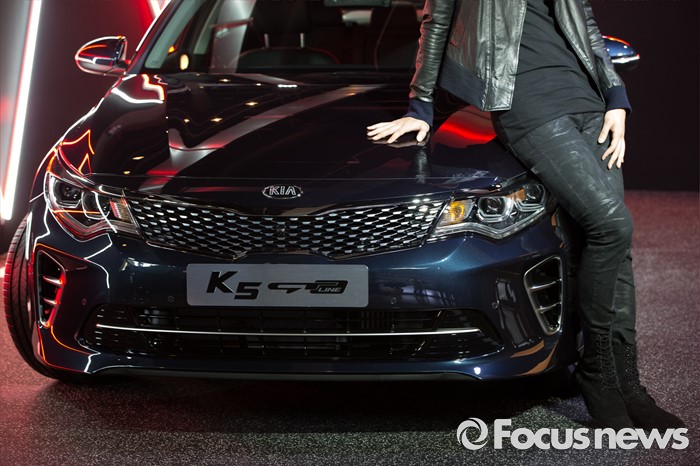 (서울=포커스뉴스) 12일 오전 서울 강남구 인터와이드 스튜디오에서 열린 '2017 K5, K5 PHEV' 출시 사진 및 영상 발표회에 K5 GT-Line 차량이 전시되어 있다.