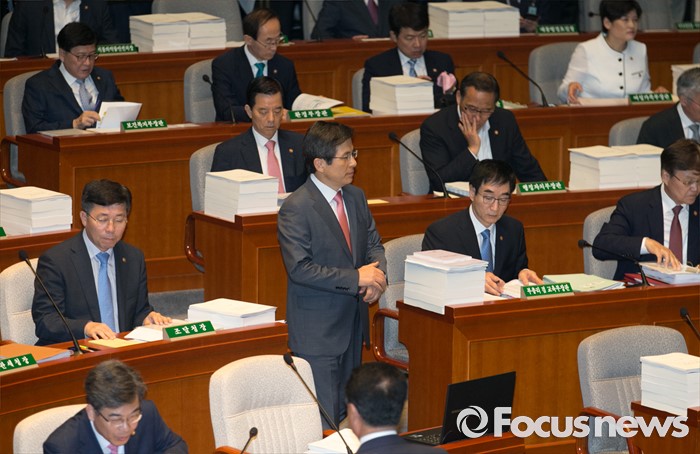 (서울=포커스뉴스) 12일 오전 서울 여의도 국회에서 2015회계연도 결산을 위해 열린 예산결산특별위원회 전체회의에 황교안 국무총리가 참석하고 있다.