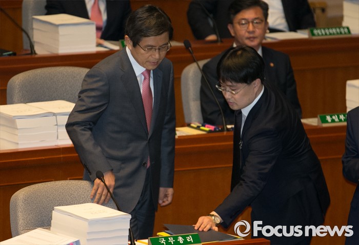 (서울=포커스뉴스) 12일 오전 서울 여의도 국회에서 2015회계연도 결산을 위해 열린 예산결산특별위원회 전체회의에 황교안 국무총리가 참석하고 있다.