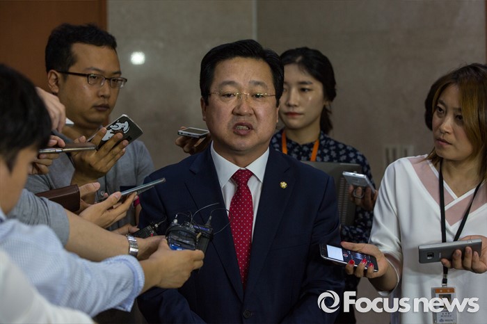 (서울=포커스뉴스) 이장우 새누리당 의원이 12일 오전 서울 여의도 국회에서 오는 8월9일 전당대회 최고위원 선거 출마를 선언한 뒤 취재진 질문에 답하고 있다.