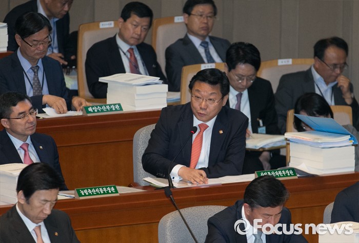 (서울=포커스뉴스) 12일 오전 서울 여의도 국회에서 2015회계연도 결산을 위해 열린 예산결산특별위원회 전체회의에 참석한 주형환 산업통상자원부 장관이 의원들의 질의에 답하고 있다.