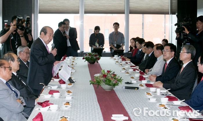 (서울=포커스뉴스) 김수한 새누리당 상임고문이 12일 오후 서울 여의도 한 중식당에서 열린 김희옥 혁신비대위원장과 상임고문단의 오찬에 참석해 인사말을 하고 있다.