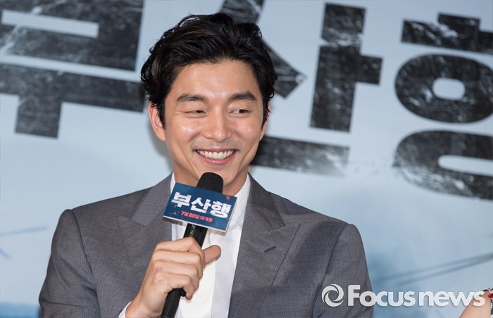 (서울=포커스뉴스) 12일 오후 서울 광진구 롯데시네마 건대입구점에서 열린 영화 '부산행' 언론시사회에 참석한 배우 공유가 취재진의 질문에 답하고 있다.