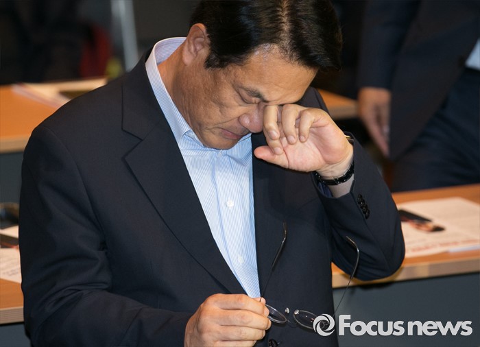 이어 "새누리당은 19대 국회에서 통과되지 못했던 파견법을 비롯한 노동4법이 하루빨리 20대 국회에서 통과돼 기업 현장에서 실질적 도움을 드릴 수 있도록 최선을 다하겠다"고 밝혔다.11일 오후 서울 여의도 중소기업중앙회관에서 열린 새누리당 전국원외위원장협의회 전체회의에 참석한 정진석 원내대표가 눈을 닦고 있다. 2016.07.11 박동욱 기자