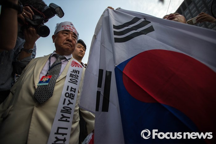 (서울=포컷뉴스) 12일 오후 서울 중구 밀레니엄서울힐튼호텔 앞에서 '일본 자위대 62주년 창설 기념식'을 규탄하는 시민단체들의 시위가 열리고 있다.