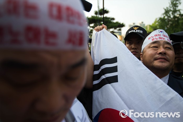 (서울=포컷뉴스) 12일 오후 서울 중구 밀레니엄서울힐튼호텔 앞에서 '일본 자위대 62주년 창설 기념식'을 규탄하는 시민단체들의 시위가 열리고 있다.