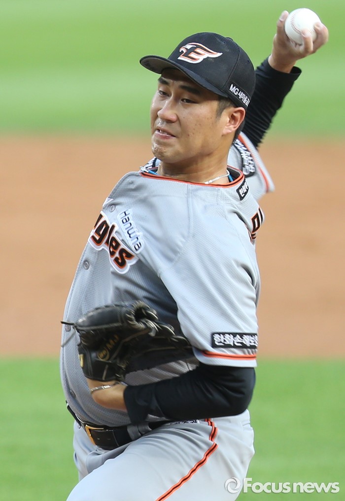 △ 투구하는 한화 장민재