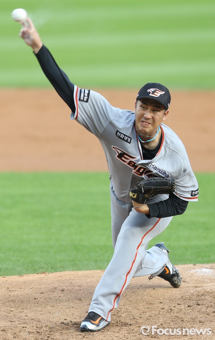 △ 투구하는 한화 장민재