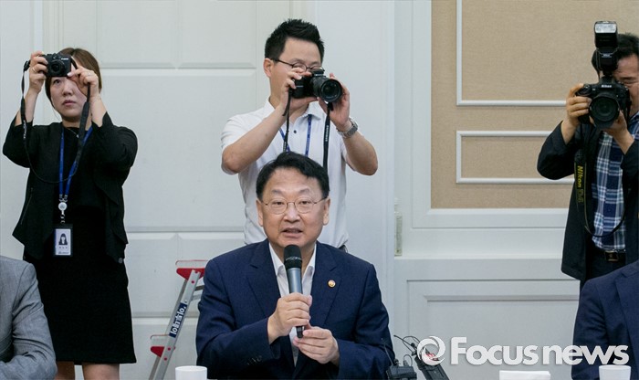 (서울=포커스뉴스) 13일 오전 서울 여의도 국회 귀빈식당에서 열린 더불어민주당 저출산 해소를 위한 국민연금 공공투자 특별위원회 1차 정책협의회에 참석한 유일호 경제부총리 겸 기획재정부 장관이 발언하고 있다.