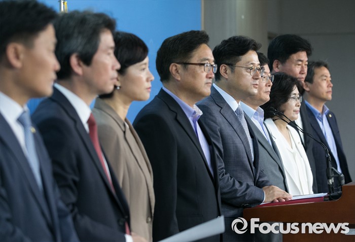 (서울=포커스뉴스) 13일 오전 서울 여의도 국회 정론관에서 더불어민주당 민주평화국민연대(이하 민평련) 소속 의원들이 한반도 및 동북아지역의 평화와 협력을 위협하는 사드배치 반대 기자회견을 하고 있다.