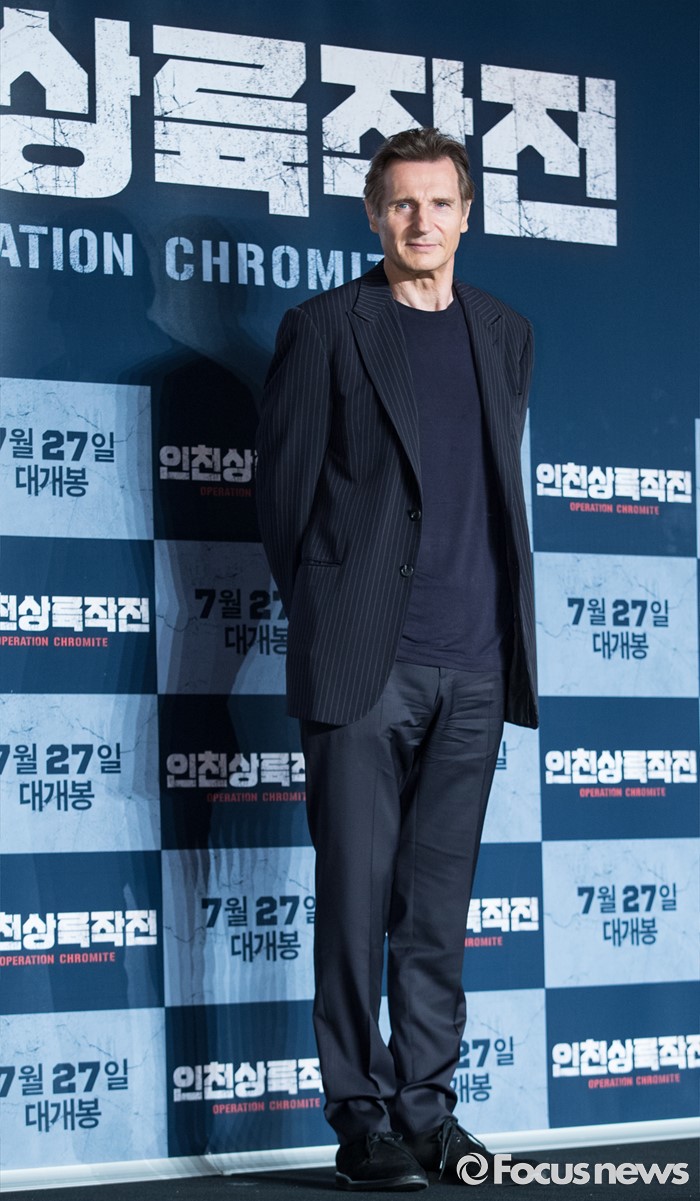 (서울=포커스뉴스) 13일 오전 서울 영등포구 콘래드 서울 호텔에서 열린 영화 '인천상륙작전' 기자간담회에 참석한 배우 리암 니슨이 포토타임을 갖고 있다.