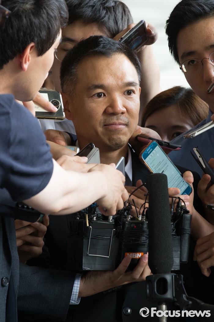 (서울=포커스뉴스) 진경준 검사장의 '주식대박' 의혹과 관련해 넥슨 창업주 김정주 NXC(넥슨지주회사) 회장이 13일 오후 서울 서초구 서울중앙지방검찰청으로 들어서기 전 취재진의 질문을 받고 있다.