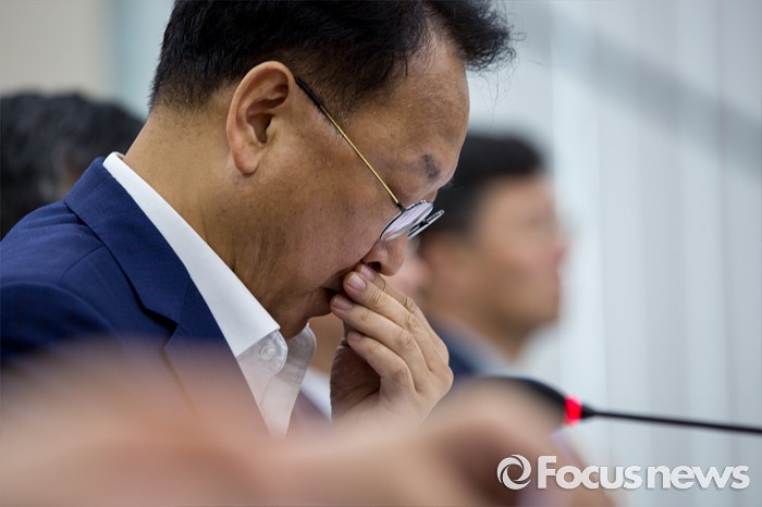 (서울=포커스뉴스) 유일호 경제부총리 겸 기획재정부 장관이 13일 오후 서울 여의도 국회에서 열린 '기획재정위원회 전체회의'에 참석해 의원들의 대우조선해양에 대한 수사자료와 회계법인의 실사보고서 제출 요구하며 정상 회의 시작을 미루자 난감해 하고 있다. 이날 기재위 여야 의원들은 대우조선해양과 관련된 자료를 보지 않고는 조선업 구조조정에 대한 추경예산 편성이 어렵다는 입장을 밝혔다.