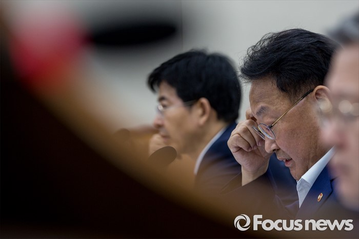 (서울=포커스뉴스) 유일호 경제부총리 겸 기획재정부 장관이 13일 오후 서울 여의도 국회에서 열린 '기획재정위원회 전체회의'에 참석해 의원들의 대우조선해양에 대한 수사자료와 회계법인의 실사보고서 제출을 요구하며 회의 시작을 미루자 난감해 하고 있다. 이날 기재위 여야 의원들은 대우조선해양과 관련된 자료를 보지 않고는 조선업 구조조정에 대한 추경예산 편성이 어렵다는 입장을 밝혔다.