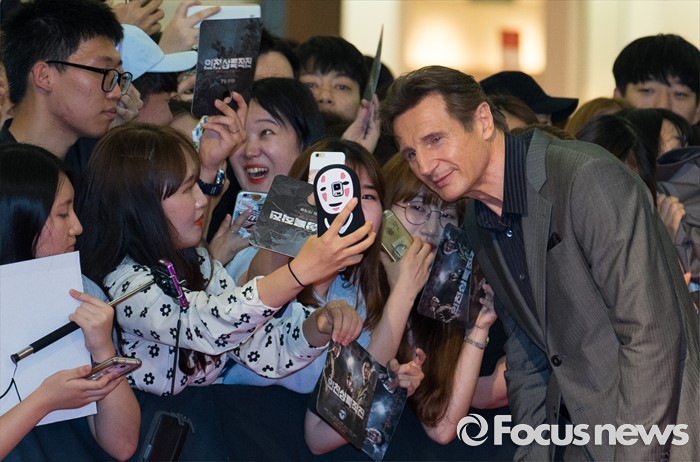 | △ 팬들과 사진 찍는 리암 니슨 |