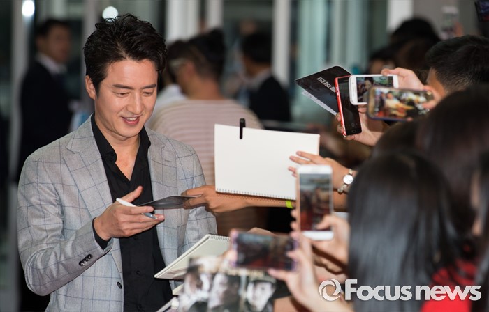 (서울=포커스뉴스) 13일 오후 서울 영등포구 타임스퀘어에서 열린 영화 '인천상륙작전' 레드카펫 행사에 참석한 배우 정준호가 팬들에게 사인 하고 있다.