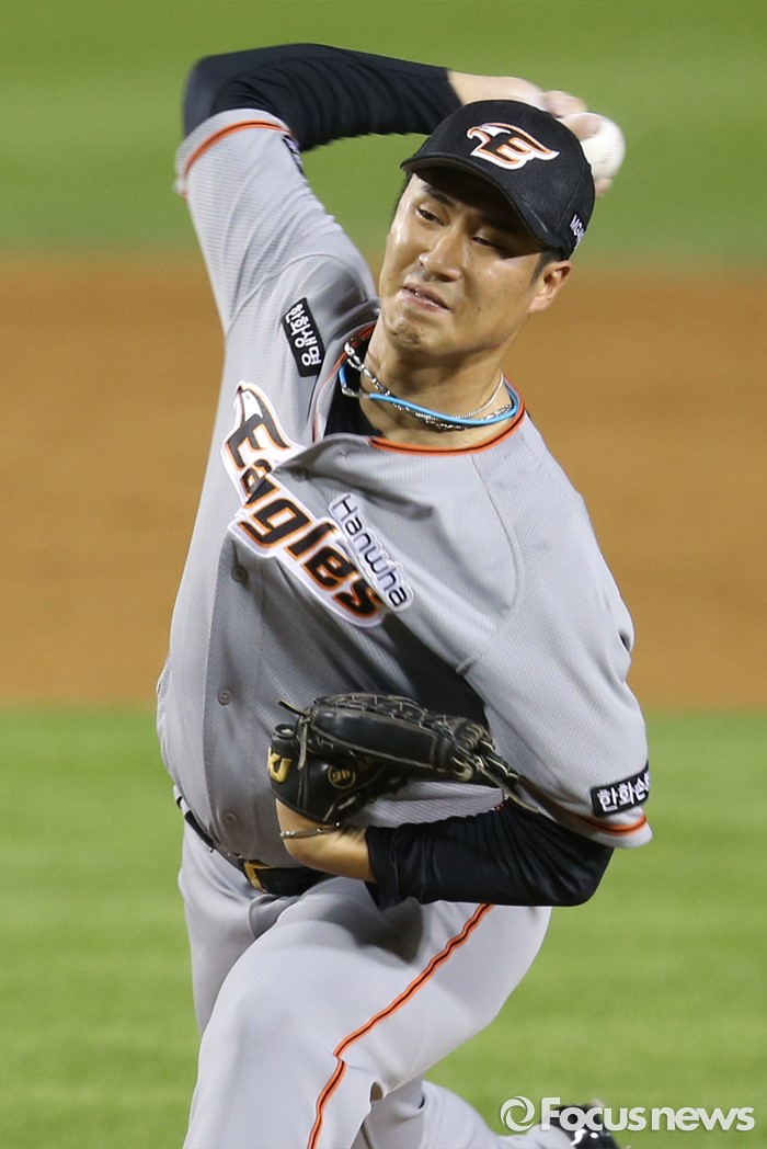 (서울=포커스뉴스) 13일 서울 잠실구장에서 열린 2016 프로야구 한화-LG 경기에서 한화 투수 장민재가 5회말 등판해 투구하고 있다.
