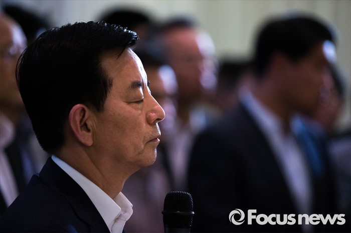 (서울=포커스뉴스) 한민구 국방부 장관이 13일 오후 서울 용산구 국방컨벤션센터에서 사드 배치에 항의 방문 중인 김항곤 성주군수 등 사회단체장 및 군민들에게 사과 발언을 하고 있다. 국방부는 이날 경북 성주군을 고고도 미사일 방어(사드·THAAD)체계 배치 지역이라고 공식 발표했다.