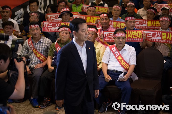 (서울=포커스뉴스) 한민구 국방부 장관이 13일 오후 서울 용산구 국방컨벤션센터에서 사드 배치에 항의 방문 중인 김항곤 성주군수 등 사회단체장 및 군민들을 만나기 위해 국방컨벤션센터로 들어서고 있다. 국방부는 이날 경북 성주군을 고고도 미사일 방어(사드·THAAD)체계 배치 지역이라고 공식 발표했다.
