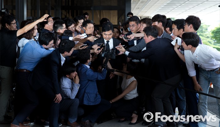 (서울=포커스뉴스) '주식 대박' 논란에 휩싸인 진경준 검사장이 14일 오전 서울 서초구 서울중앙지방검찰청으로 출석하고 있다.