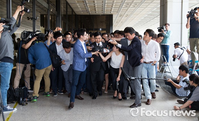 (서울=포커스뉴스) '주식 대박' 논란에 휩싸인 진경준 검사장이 14일 오전 서울 서초구 서울중앙지방검찰청으로 출석하고 있다.