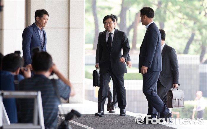 (서울=포커스뉴스) '주식 대박' 논란에 휩싸인 진경준 검사장이 14일 오전 서울 서초구 서울중앙지방검찰청으로 출석하고 있다.