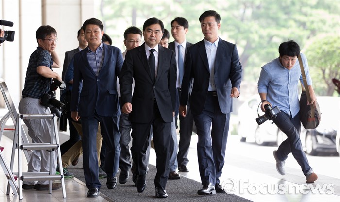 (서울=포커스뉴스) '주식 대박' 논란에 휩싸인 진경준 검사장이 14일 오전 서울 서초구 서울중앙지방검찰청으로 출석하고 있다.