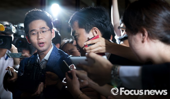 (서울=포커스뉴스) '주식 대박' 논란에 휩싸인 진경준 검사장이 14일 오전 서울 서초구 서울중앙지방검찰청으로 출석하고 있다.