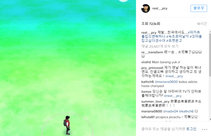 보이그룹 엑소(EXO)도 포켓몬의 마성으로부터 벗어날 수 없었다. 엑소 리더 찬열은 13일 SNS에 '포켓몬 고' 게임 화면을 담은 사진과 함께 "제발 한국에서도… 속초로 떠날까, 포켓몬 잡고 싶다"라는 글을 게재하며 애타는 심정을 전했다.