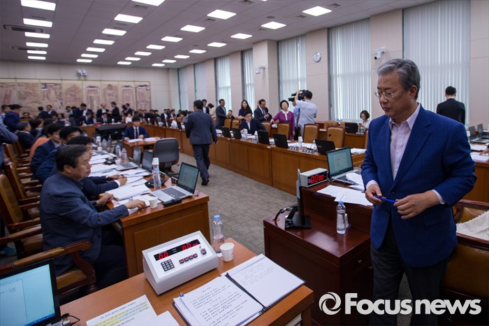 | △ 회의실 나서는 유성엽 위원장 |