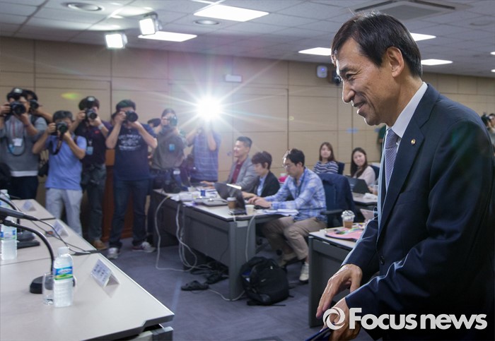 (서울=포커스뉴스) 이주열 한국은행 총재가 14일 오후 서울 중구 한국은행에서 최근의 물가안정목표제 운영상황에 대해 설명하기 위해 발걸음을 옮기고 있다.