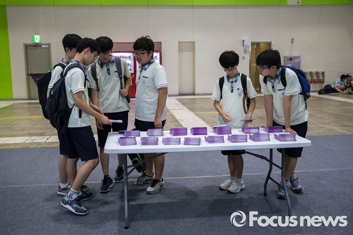(서울=포커스뉴스) 14일 오후 서울 강남구 코엑스에서 열린 전문대학 엑스포에 참가한 학생들이 행사장에 마련된 소개 책자를 살펴보고 있다.